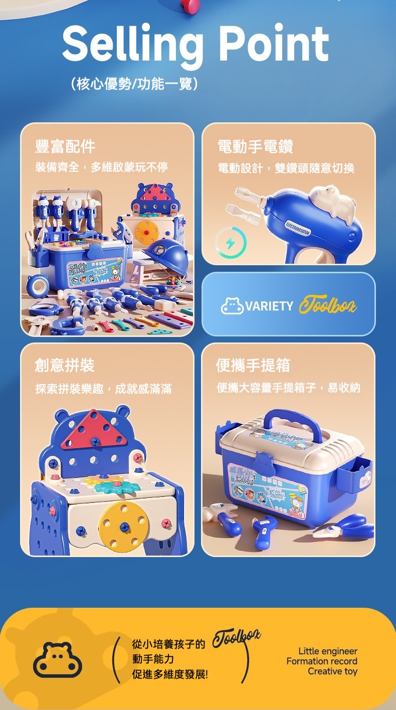 【啟蒙益智】DIY兒童工具箱【小小工程師養成記✅豐富配件✅創意拼裝✅ 培養三維感知,3-8歲寶寶,助力寶寶腦力發育】