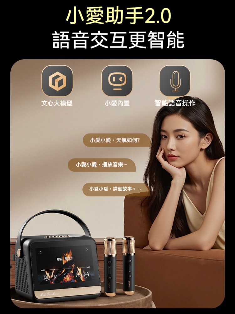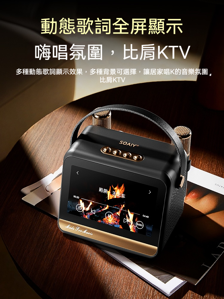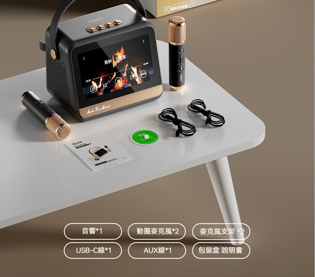【戶外家用K歌】索愛麥克風藍牙音響✅歌詞顯示✅AI智能語音點歌✅智能美聲