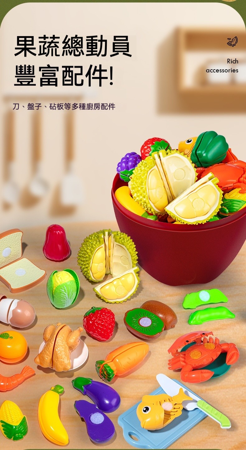 【蒙氏早教推薦】啟蒙益智兒童水果切切樂【32種果蔬認知 ✅觸摸✅觀色✅ 培養精細感官,3-8歲寶寶,助力寶寶腦力發育】