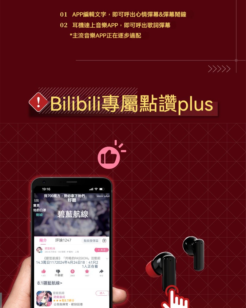 【2025潮品推薦】Bilibili新款CUBE FACE碧藍航線鐵血LCD觸控螢幕真無線藍牙耳機